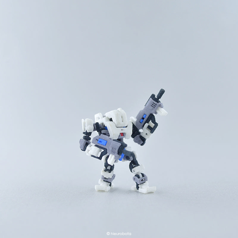 In 2158, MicroSystem launched the Atman 1000, a robust humanoid Neurobota designed for superior agility in intense street battles. Equipped with dual rapid-fire disruptor rifles, it excels in swift and decisive combat, maintaining control in urban warfare dynamics.